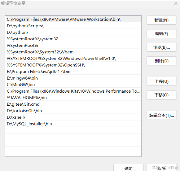 双击Path,然后点击新建, 把刚刚MySQL安装的目录中的bin目录添加到这里