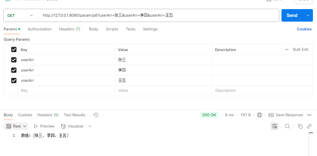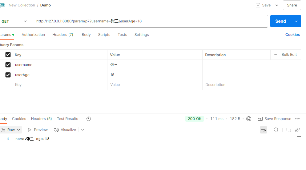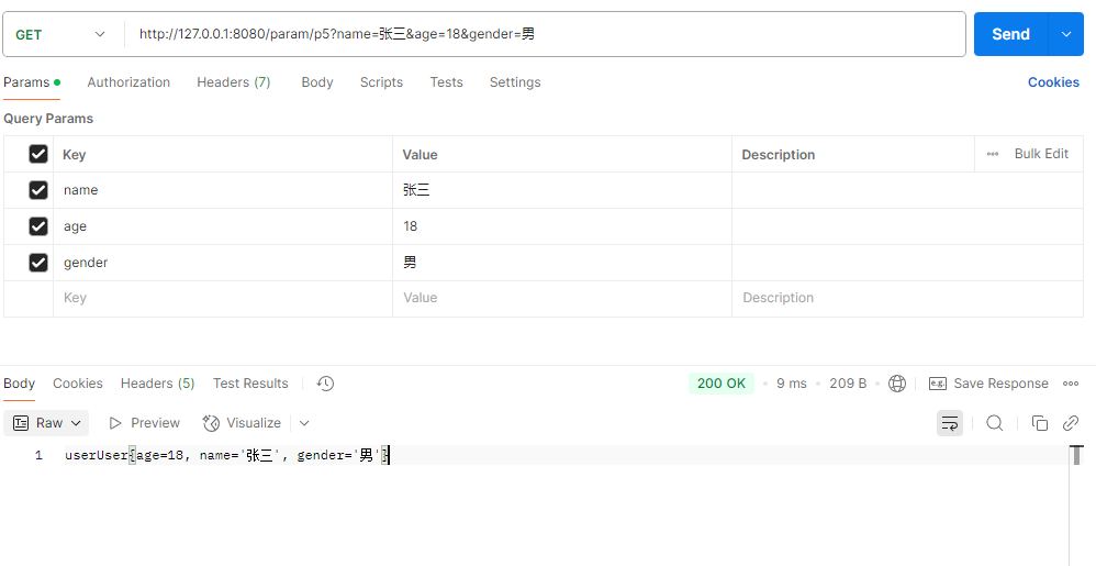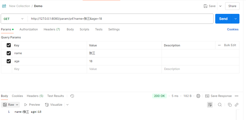 postman构造请求返回结果:
