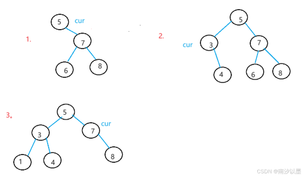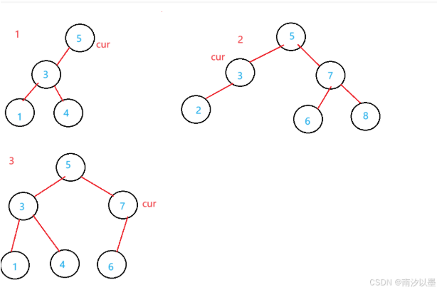 第二种:当cur为根节点的左边时,图中为3,既让root=cur.right
