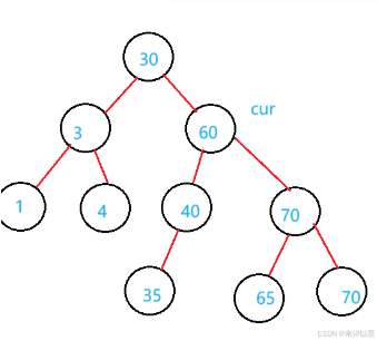 当我们要删除的节点为cur时,即图中的60,我们采用的方法是替换法,