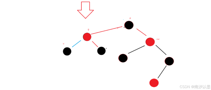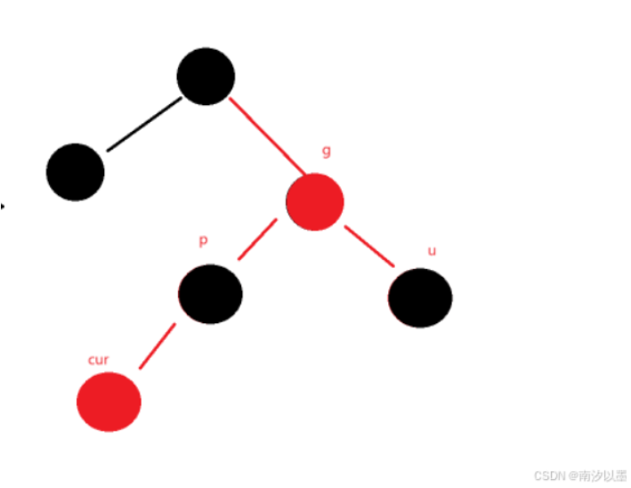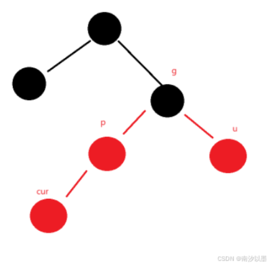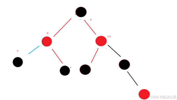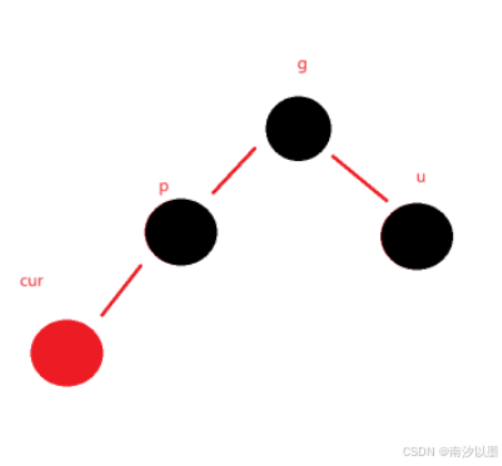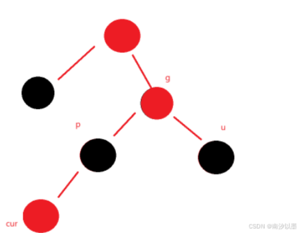 cur为当前节点、parent为cur的父亲节点、gandfacter为parent的父亲节点、uncle为叔叔节点