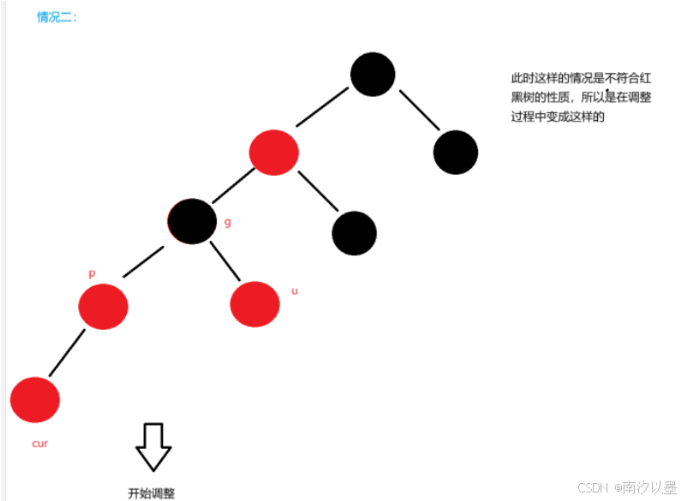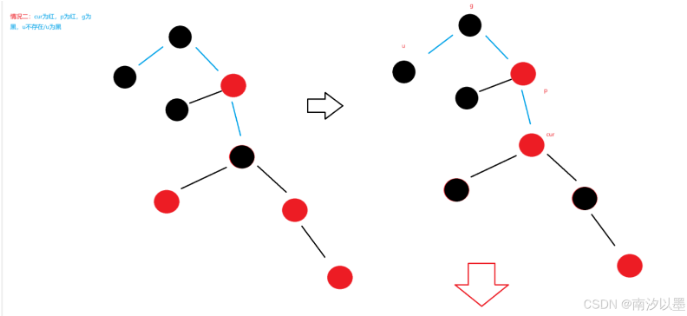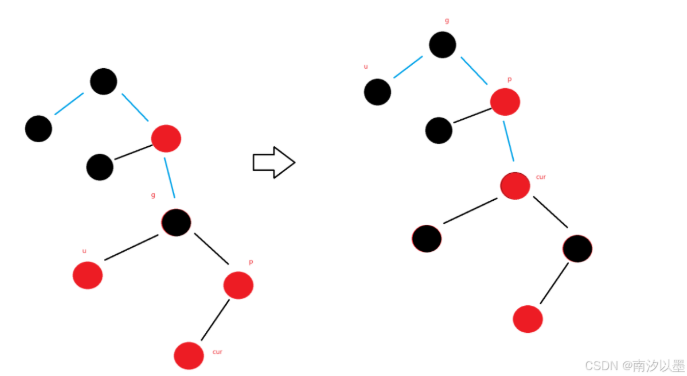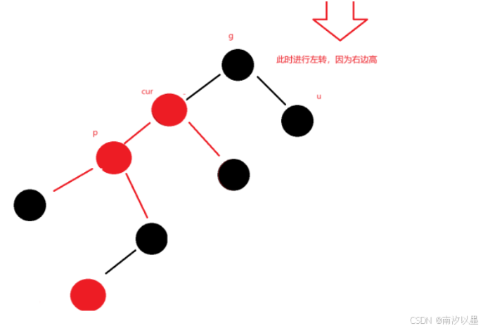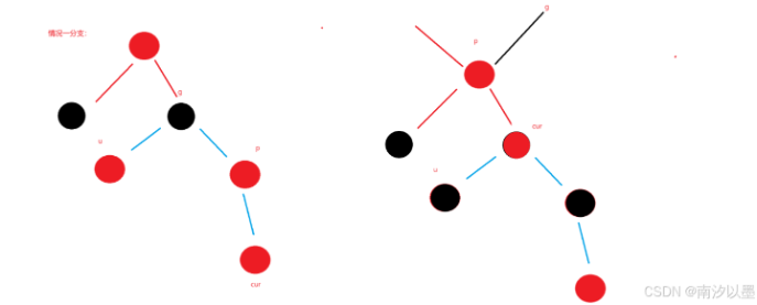 当插入的节点cur的父亲节点在左边为一种情况,在右边又是一种情况。