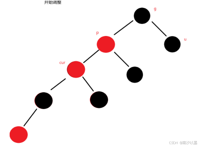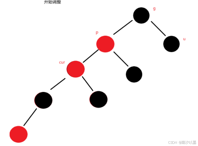 //连接两个红色节点的时候,就要调整,即检查父亲节点是否为红色节点即可