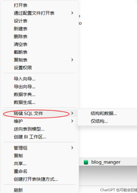 mysqldump -u root -p -d blog_system > blog_schema.sql