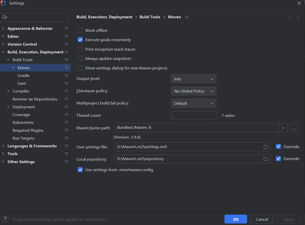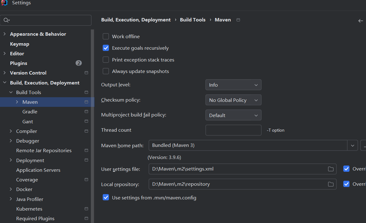 对于这个User setting file而言,maven使用的是idea自带settings文件,所以可以暂时不必去管理。