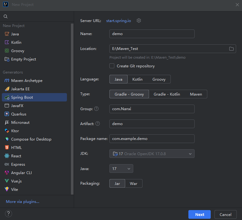 group和artifact中,想填成自己的也行,或者使用默认的也行