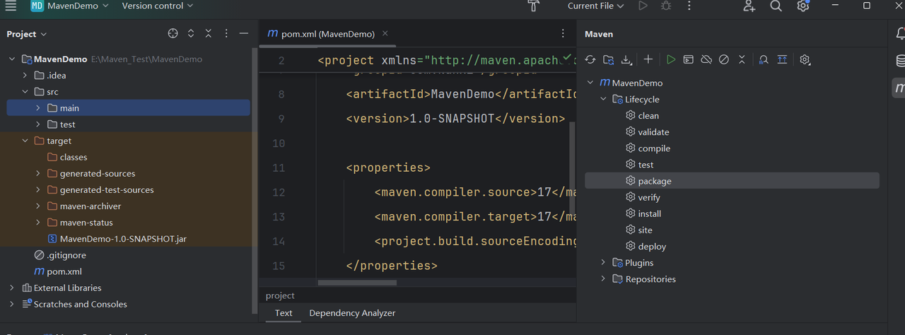 此时此刻,左边的项目结构中,多了个target目录,还多了个jar包