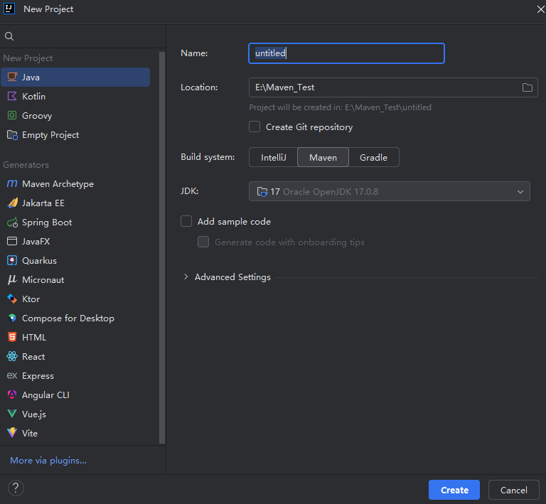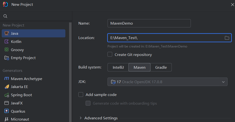 然后location你放到你觉得合适的位置就行,Build system选择maven即可,jdk你选择你电脑配置好的jdk版本