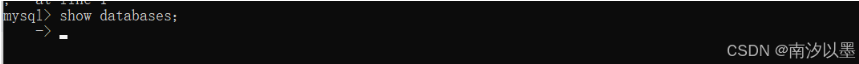 值得注意的是,SQL语句中,我们用到的关键词,要进行空格隔开,结束的时候要用分号(英文的)隔开,如若没有分号出现以下情况: