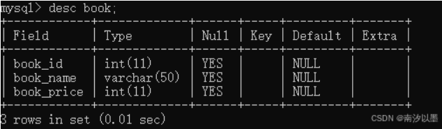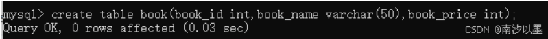 这里的意思是创建了一个book的表,把bookid、bookname、bookprice填了进去。