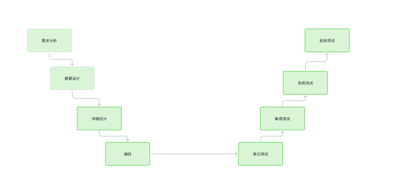 V模型是瀑布模型在测试领域的延伸,强调开发阶段与测试阶段的一一对应关系,左侧是开发活动,右侧是测试活动,形成V字形结构
