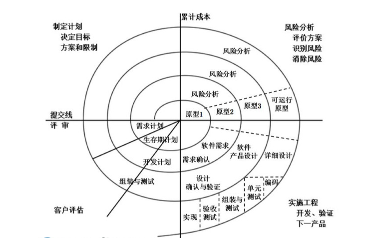 在有些场景中,软件开发的初期需求不是很明确时,会采用渐进式的开发模型。而螺旋模型是渐进式开发模型代表之一。