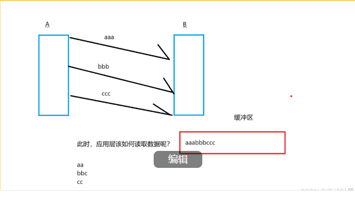 因为数据包接收到缓冲区中,所以数据堆到一起,显得数据“粘”在一起了。