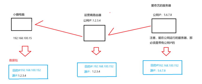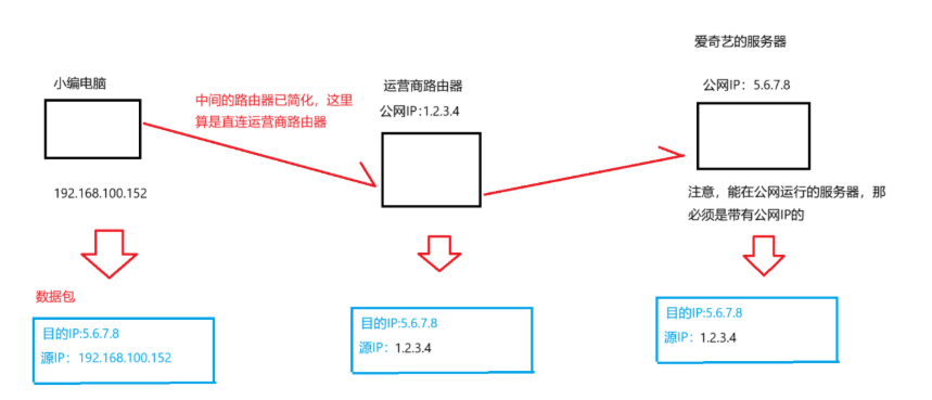 那么我们的电脑的IP地址,会在运营商那,进行一个临时转换。