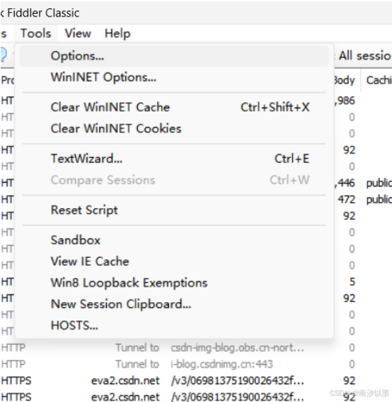 fiddler界面中